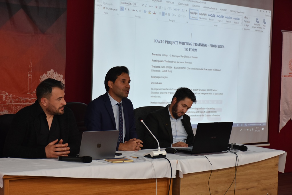 Karaman İl Milli Eğitim Müdürlüğü Konferans Salonu’nda gerçekleştirilen program, özellikle Erasmus+ projelerine odaklanarak öğretmenlerin proje yazma ve yürütme becerilerini geliştirmeyi hedefledi.
